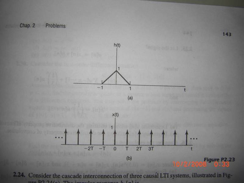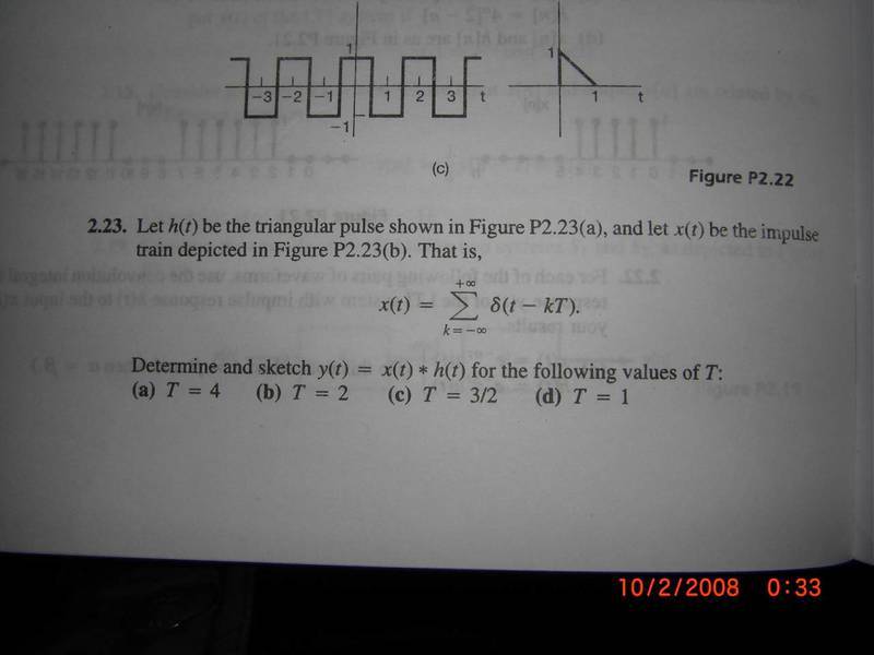For the question stated in the pictures attached to this message, for part d of the question, I just can't picture why the convolution of the two signals is 1. Can someone please explain how this would be the case as the triangular signal is sweeping through all the delta functions? Thanks.