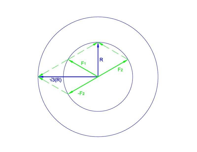 squart3*R=f1^2+f2^2-2f1f2cos(theta)