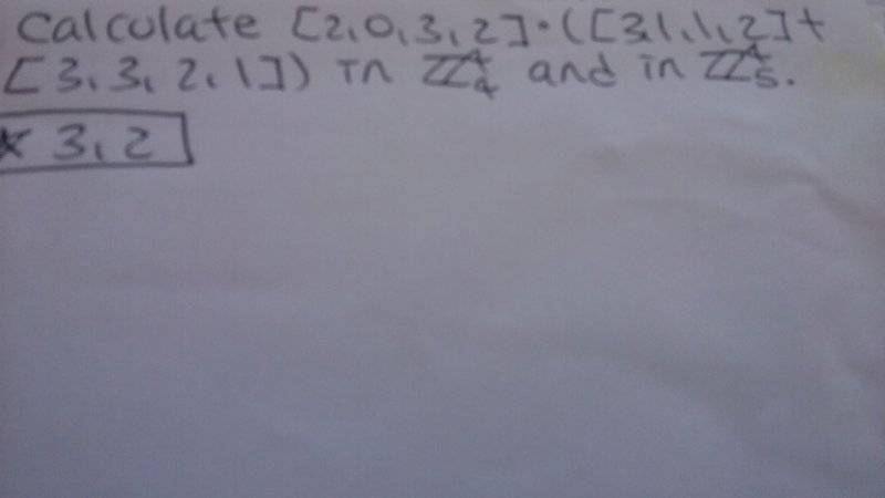 Participants are discussing the implications of dimensionality in vector notation and how it relates to the modulo operations being performed. There is a mention of the notation ##\mathbb{Z}_4## and ##\mathbb{Z}_5##, which indicates the sets of possible remainders.
