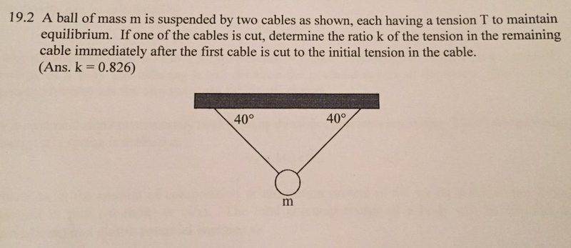 The discussion revolves around a kinematics problem involving forces acting on a particle before and after a string is cut. Participants are analyzing the forces in the vertical direction and the implications of their calculations on tension and gravitational forces.