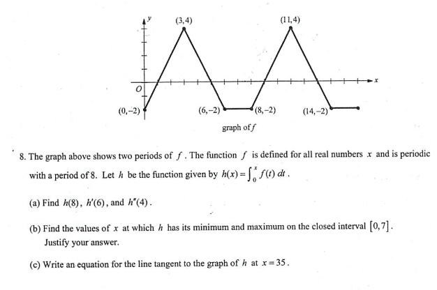 and attempt at a solution[/B]For part a, I got h(8) = 2, h'(6) = -2, and h''(4) = -2.
