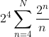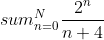 The discussion revolves around calculating the summation of a specific series involving terms of the form \( \frac{2^n}{n+4} \). Participants explore various approaches, including the use of Taylor series and integral relations, while questioning the applicability of certain mathematical tools.