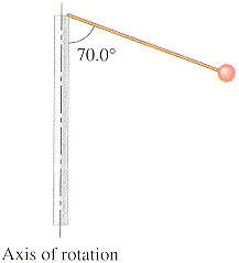 A 0.700 kg ball is on the end of a rope that is 0.60 m in length. The ball and rope are attached to a pole and the entire apparatus, including the pole, rotates about the pole's symmetry axis. The rope makes an angle of 70.0° with respect to the vertical as shown. What is the tangential speed of the ball?