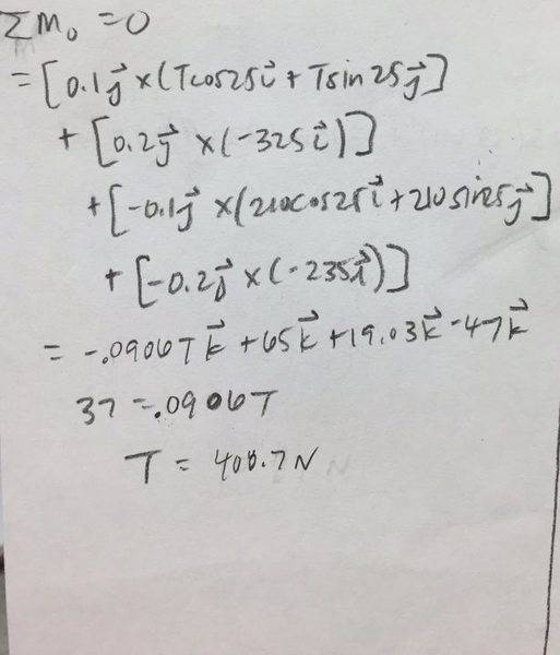 ∑F = -235i -Fi +Tcos25i + Tsin25j +210cos25i +210sin25j