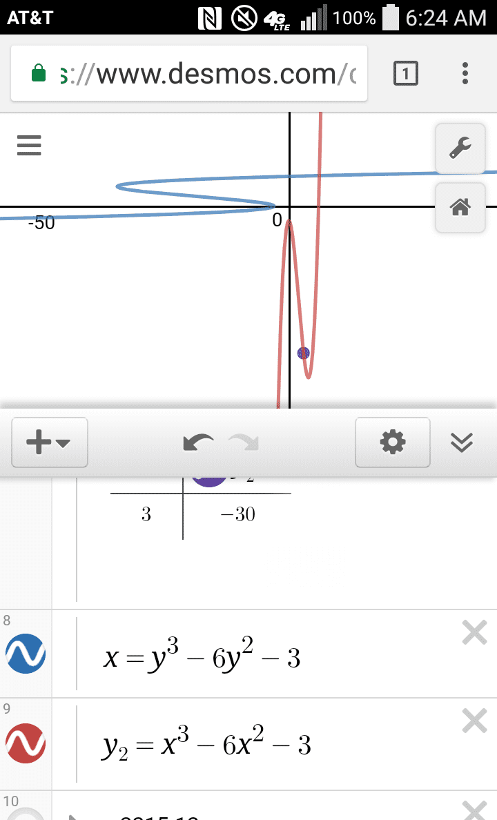 - There is a discussion about the roots of the equation $$x^3-6x^2-3=a$$ for different values of $$a$$, with specific numerical approximations provided.