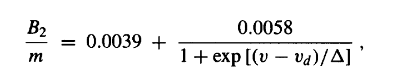 Bm = .0039 + (.0058)/(1+exp((initialVelocity-vd)/delta)) %B2/m
