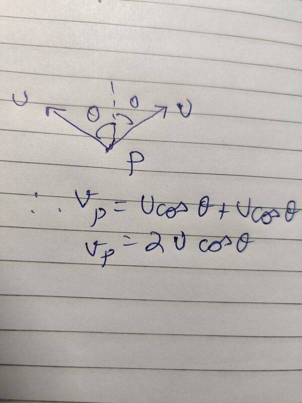 3) As the vertical distance that P moves is greater than the length that the string shortens in the same time, the average value of V is greater than U.
