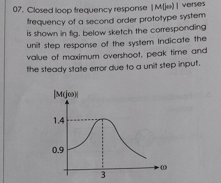 - Find the parameters mentioned in the problem statement image i.e. peak time, peak overshoot, steady state error for unit step input.