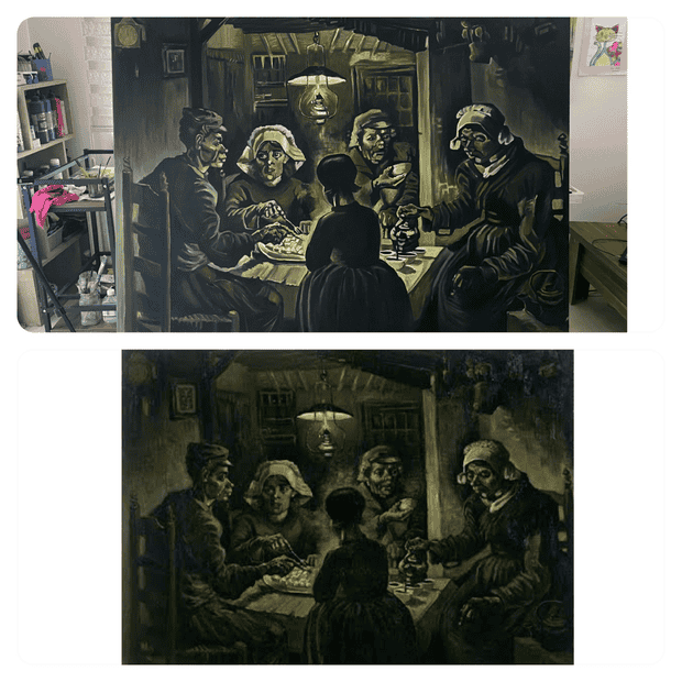 Hi, Last year i made copy of this painting this is very hard to make. I like colors of this one, keeps calm.