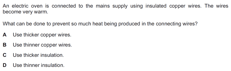 The discussion revolves around the electrical properties of wires in a circuit, specifically focusing on how wire thickness affects resistance, current, and power dissipation. The context includes a practical scenario involving a cooking appliance and the implications of using different wire resistances.