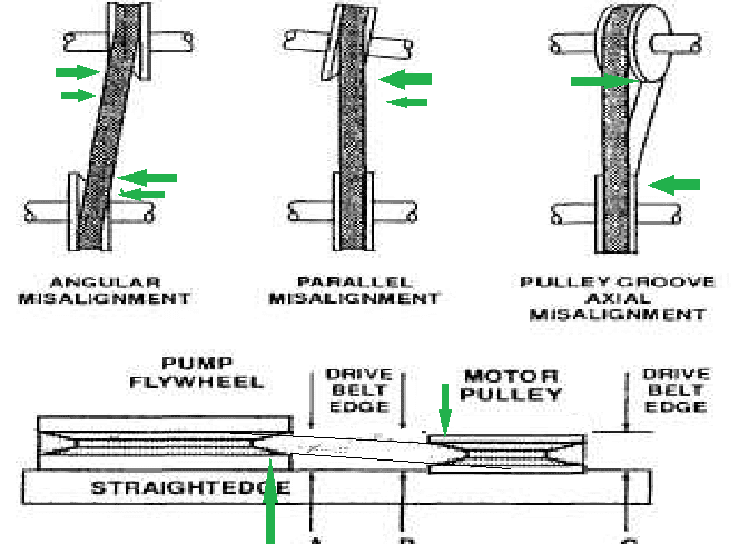What makes a misaligned belt drive inefficient? I imagine it is due to increase friction but where does this friction manifest in the system? (which component and how?)
