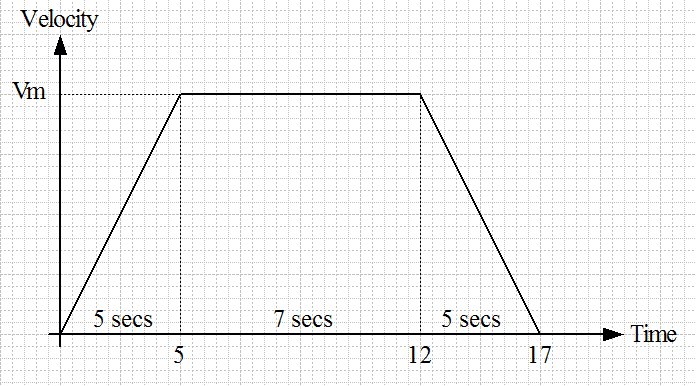 Q) A lift travels to the top of a tower through a vertical displacement of 48 m. The total journey takes 17 s. The lift accelerates from rest at a constant rate for the first 5 seconds. Then it moves at constant speed and then decelerates to rest at a constant rate for the last 5 seconds.