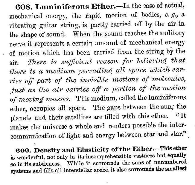- Understanding of historical scientific concepts, particularly ether and aether.