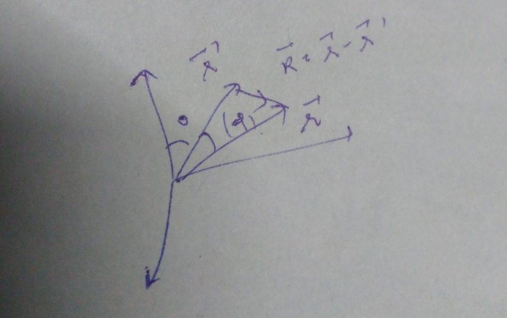 - if the source be represented by the vector ##\vec r'## and another point of interest be ##\vec r## where ##\vec R=\vec r-\vec r'## with respect to a fixed origin,