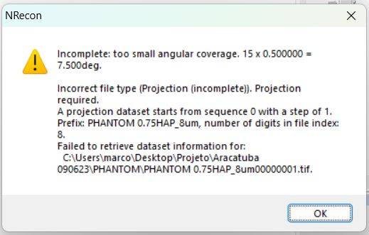 But now, everytime I try to reconstruct the phantom scan on the NRecon, it shows the message in the image linked on the post.