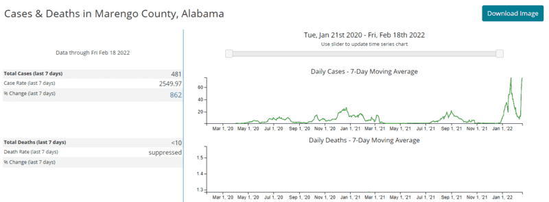 - Marengo County reports a 450% increase in Covid cases in the past week. WHY?