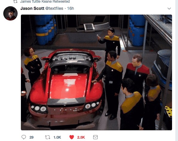 On February 6th, 2018 SpaceX launched the Falcon Heavy rocket, carrying Elon Musk's Tesla Roadster which had "Don't Panic!" written on the screen on the dash.