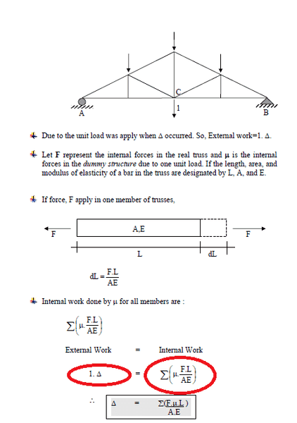 (For the external work, the author use 1Δ , so 1 = P so , it's clear that the author use W = P Δ and not W = 0.5 P Δ)