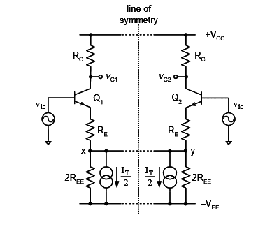 - Some participants inquire about the reasons for modifying the amplifier circuit when common mode signals are applied, questioning the role of components like RE and ro in the analysis.