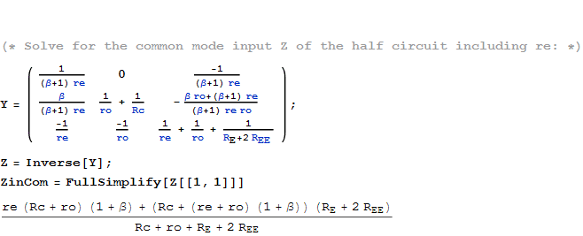 - Another participant presents a formula for common mode input resistance, suggesting that simplifying assumptions are being made in the analysis.