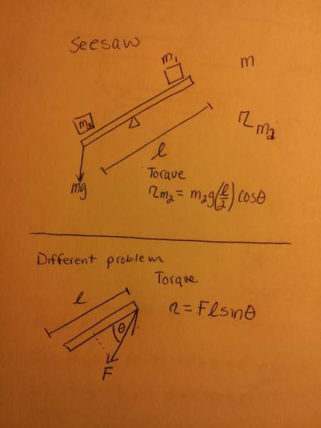 For example. Referring to the attached picture. The SEESAW asks evaluate the torque of m2 (m2>>m1).