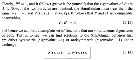 - Some participants assert that if the Hamiltonian treats two particles identically, then the exchange operator must commute with the Hamiltonian.
