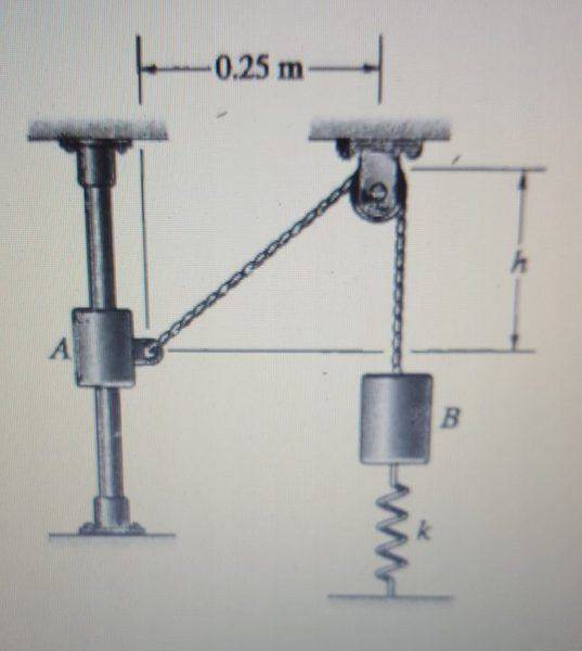 The discussion centers on solving a mechanical problem involving a collar sliding on a vertical bar with two masses (ma = 20 kg, mb = 10 kg) and a spring constant of k = 250 kN/m. The objective is to determine the height (h) when the system is at rest, given that the spring is unstretched at h = 0.2m. Participants noted that the equations governing the forces and moments are straightforward; however, the geometry complicates the solution, resulting in a fourth-order polynomial in h.