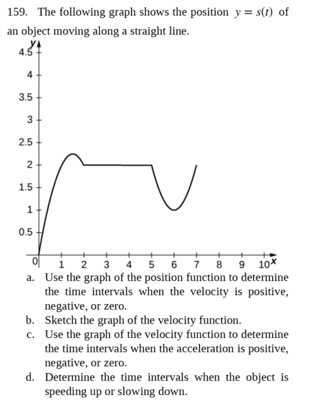 Use the graph (attached below) to determine the time intervals when the velocity is positive, negative, or zero.