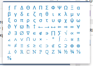 Someone made a posting recently about symbols. I see a tool button 'square root of x' and that reveals several oddball characters and some symbols. There were in the past, other kinds which are not there in that tool now. They allowed for some typesetting, but now I guess we are expected to learn some LaTeX.
