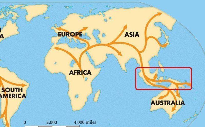 And as I see in the map above, the track to Australia passed Indonesia islands. But not all Indonesia people look like Australian people.