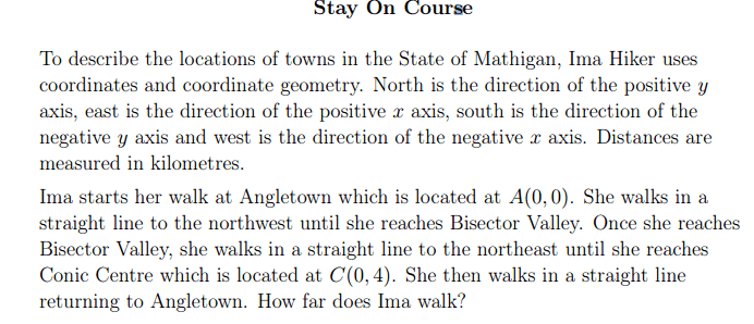 The discussion centers around determining the location of Bisector Valley using coordinate geometry. Participants explore the mathematical approach to find the intersection of two lines that represent different legs of a journey.