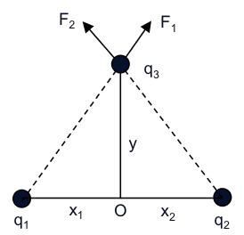 3.) Taking this force value, I plugged it back into Coulomb's law in an attempt to obtain the value of d (In this problem, x = 30mm, y is what I am trying to find. So by finding d, I can use Pythagorean to calculate it). However... this is where things break apart. When I find d, I realize that this value is SMALLER than my x value... which makes 0 sense. From here I became absolutely lost.