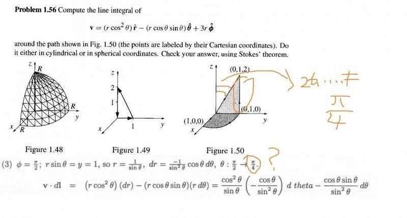 You're right. It's a mistake.garylau said:Where is pi/4 coming from in the line integral(section 3)?