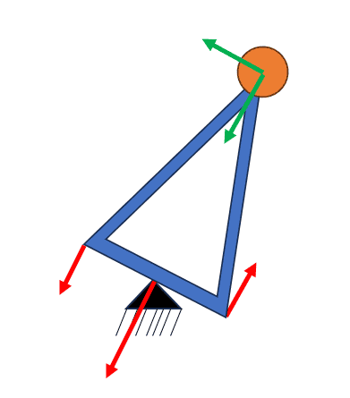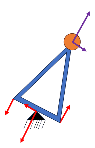 You could then analyze the internal forces at a given instant with this. Assume all the corners of the triangle are articulations.