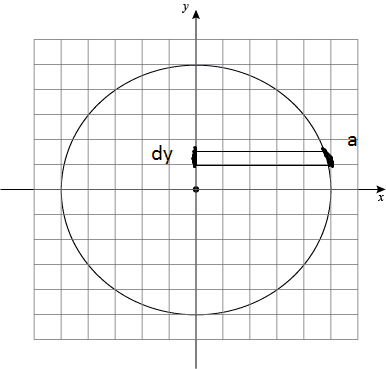 - Then, I divide the quadrant into infinite arc length, each is determined by an interval on Oy axis. Each interval is determined by its position y and its height dy. So I integrate along the Oy axis.