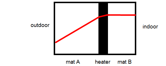 I drew them linear because without heat generation, the profile is linear. The slope in mat A is also steeper due to the k/L ratio compared to mat B. (Is this alright?)