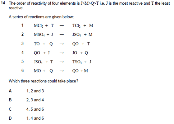 and that if the corresponding point value for the added element is less than that of the unknown element (letter) in the original molecule, then the reaction will not take place. For example