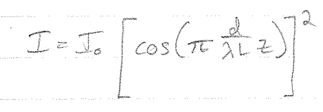 I tried using this formula to find the intensity of the central fringe and also the intensity of the fringe 35.5mm from the central fringe, however, I could not determine what I(sub)naught was.