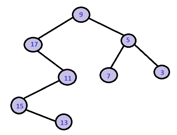 We suppose that $T$ contains the nodes $3,5,7,9,11,13,15,17$ and we are given that the pre-order traversal of the tree, gives as result the numbers in this row: $9,17,11,15,13,5,7,3$.