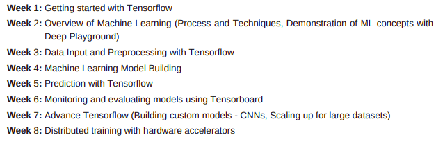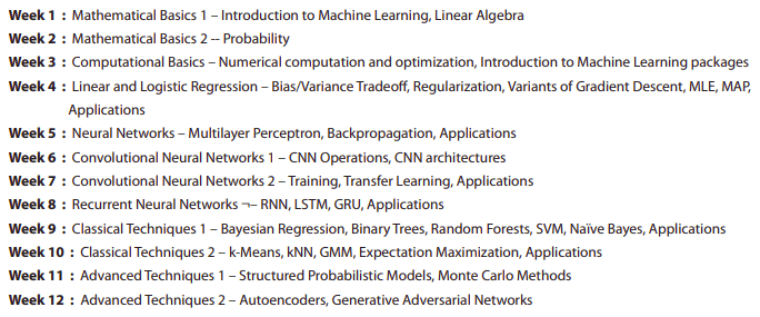 This will be an applied Machine Learning Course jointly offered by Google and IIT Madras. We will cover the basics of Tensorflow and Machine Learning in the initial sessions and advanced topics in the latter part. After this course, the students will be able to build ML models using Tensorflow.