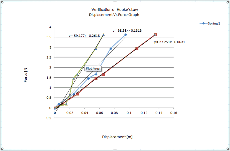 From what I can tell, Hooke's law has a linear relationship, so the line would be perfectly straight. Spring 2 is almost the same as its perfect fit line, so I think it does follow the law (it's a little different due to human errors, I am thinking). Does any other graph represent Hooke's Law? They seem to deviate from their perfect fit line a lot more than spring 2. Also, to calculate the spring constant, would I have to use F=-k(x) for each of the points I gathered than find the average (I have a force/weight and displacement table as well)? The slope of the line shown is for the perfect fit so I am not sure. Thank you for your time!