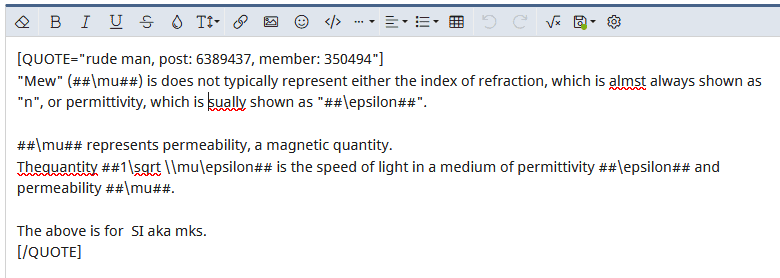 If you click "Reply" below the post by @rude man you will see how he used the double-# notation to generate the inline LaTeX version of that greek character. Also, if you click on the squareroot symbol in the upper right of the Edit window, you will get a number of greek characters that you click on, including μ :smile: