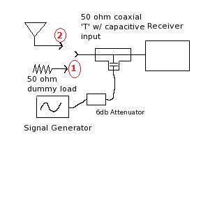 The discussion revolves around the role of a 6 dB attenuator in performing an effective sensitivity test for a radio receiver. Participants explore the implications of using the attenuator in relation to impedance matching, signal reflections, and the overall reliability of the test measurements. The conversation encompasses theoretical considerations, practical applications, and potential limitations of the testing protocol.