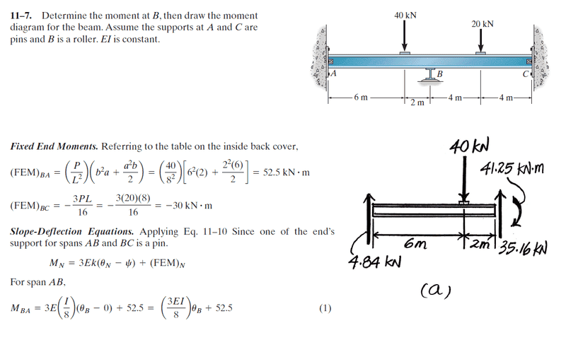 - A later reply explains that the series of problems involve statically indeterminate beams, requiring methods like the slope-deflection approach, and that the analysis assumes joint B is fixed temporarily to calculate the fixed end moment for span BC.