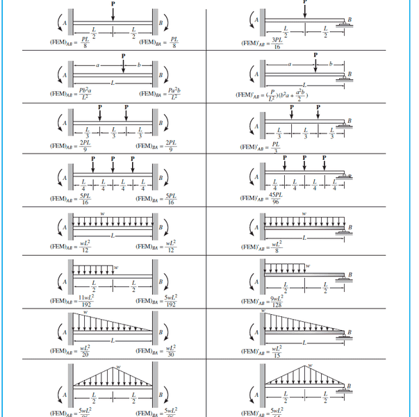- There is confusion regarding the values of fixed end moments, with one participant noting discrepancies between examples and questioning why the fixed end moment for span BC is 3PL/16, despite B being a roller and C a pinned connection.