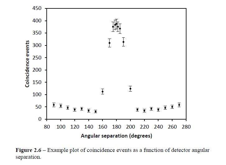 I've added a graph of coincidence events vs. detector angular separation. This is for a electron-positron annihilation (gamma-gamma coincidence) experiment.