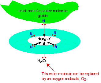 1.Ok so the top bit must be the proximal histidine and in haemoglobin rather than water bottom bit is attached to distal histidine when oxygen is not present right? Now my question is why iron atom able to make 6 bonds. For example if it is oxygen, I know it has 6 electrons in final outershell so it need 2 electrons meaning 2 bonds. (I know energy levels are bit more complicated but this is my level at the moment). Using the same prinicple iron has 26 electrons, that mean it has 16 electrons in its furthest shell so I don't understand where 6 bonds are coming?