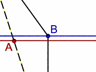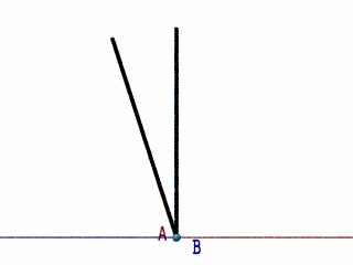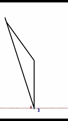 In the animation this looks like a instantaneous jump. in reality it would take some none zero time. If we zoom in on A and B and slow down the turn, this what it would look like to B
