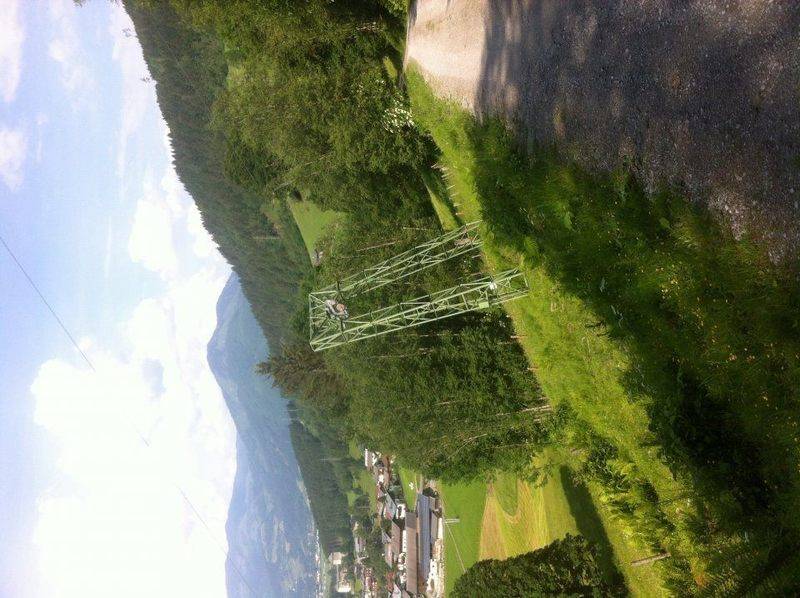 I am in Austria on a walking holiday, Why are the pylons on ski lift's not vertical? I only have A level physics but surely centre of gravity and gravitational force must put tremendous pressure on the back of the pylon, as it will naturally want to lean fwd. My friend says this is just good mechanics and physics and that it wouldn't fall fwd because of tension in wires that pull cars. That don't make sense to me. Have they just engineered it so it won't fall over i.e. Big foundations, the lean of the pylons makes pulling cars easier up the hill? Any help appreciated
