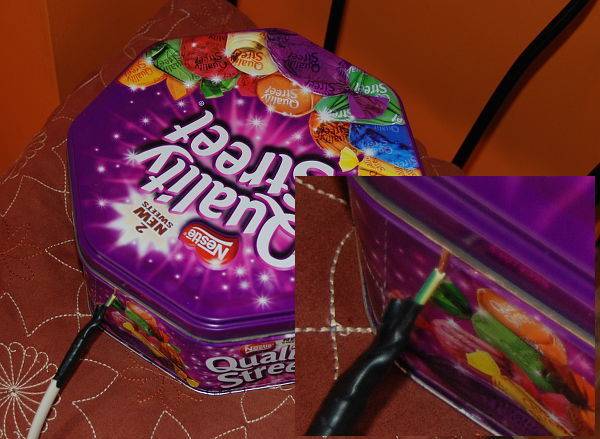 I grounded the tin to the Earth wire from a UK mains electrical socket, and repeated the reception test. I filed off the paint where the wire touched the tin. Results:-